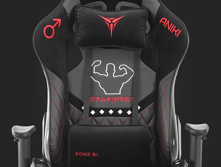 В ANIKI применяется специально обработанная износостойкая мягкая многослойная экокожа MLPU, способная выдерживать высокие нагрузки при долгом и активном использовании. Экокожа дополнена усиленной строчкой StitchRay, что гарантирует идеальное качество всех швов, а также устойчивой к истиранию замшей SolidSuede, улучшающей тактильное восприятие. На спинке кресло имеет ромбовидный рельеф, который обеспечивает лучшую вентиляцию и постоянное охлаждение во время длительных игровых сеансов.