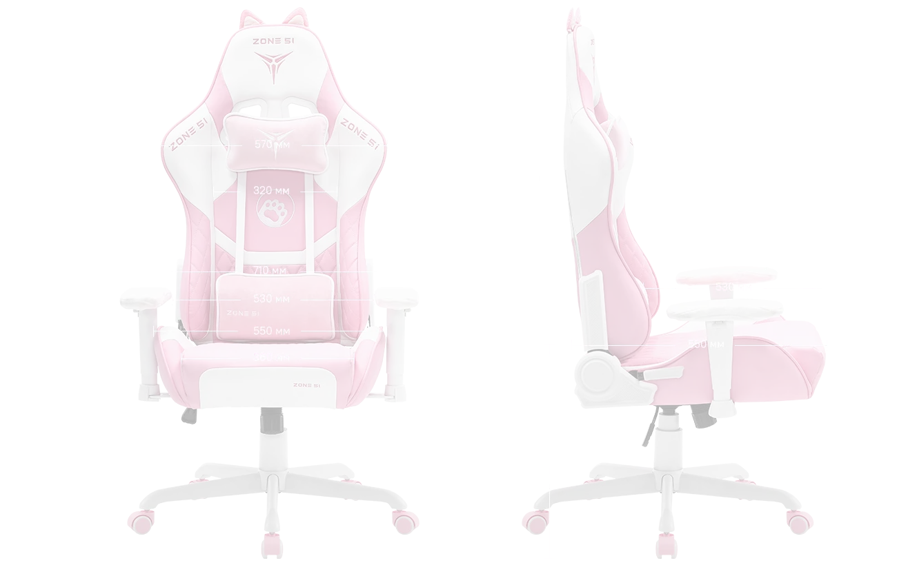 Настоящим кошечкам необходимо выделяться на фоне серой массы, поэтому кресло ZONE 51 KITTY выполнено в стильных бело-розовых цветах. Просто подчеркнуть свою индивидуальность или круто выглядеть на стриме - с ZONE 51 KITTY это возможно.